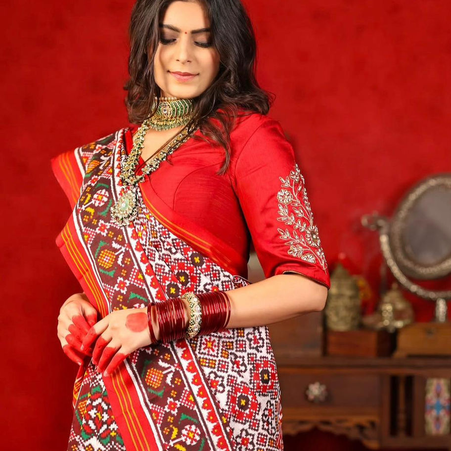 Experience the timeless beauty of India’s most celebrated handloom with this Natural Patola Saree, handwoven by master artisans using age-old techniques passed down through generations. Crafted with pure silk yarns and dyed using natural, vegetable-based colors, this saree reflects unmatched craftsmanship, cultural richness, and sustainable luxury.
